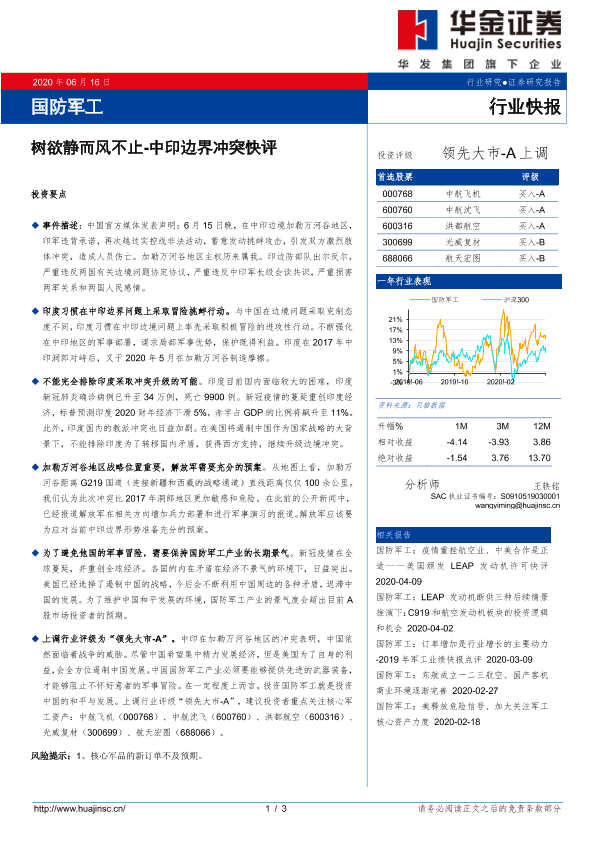 【华金证券】【20200616】国防军工行业快报:树欲静而风不止-中印边界冲突快评-3页