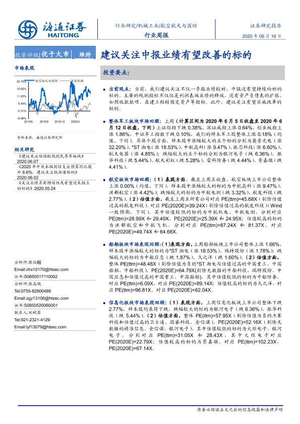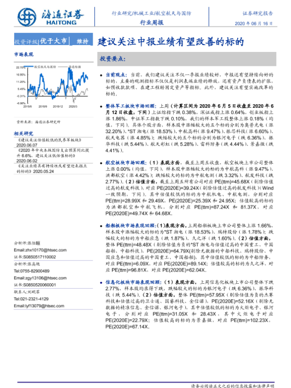 【海通证券】【20200616】20200616-海通证券-航空航天与国防行业周报:建议关注中报业绩有望改善的标的-4页