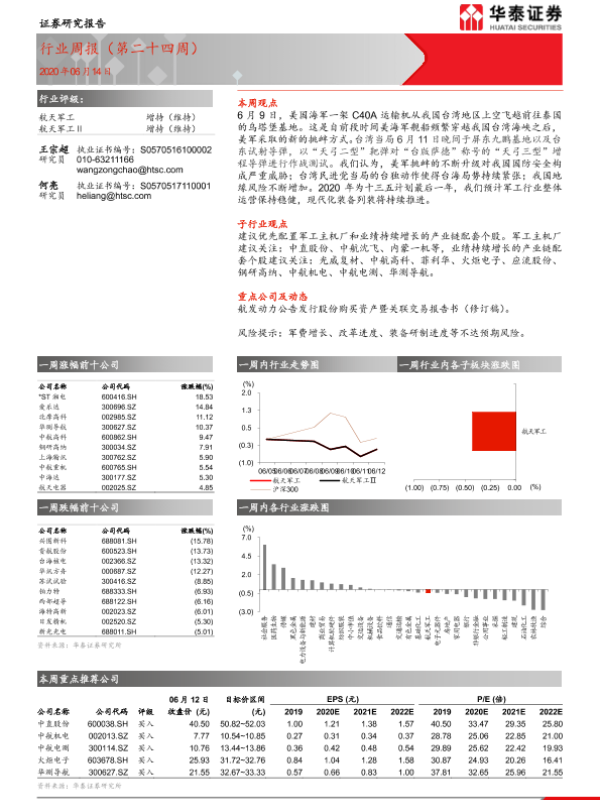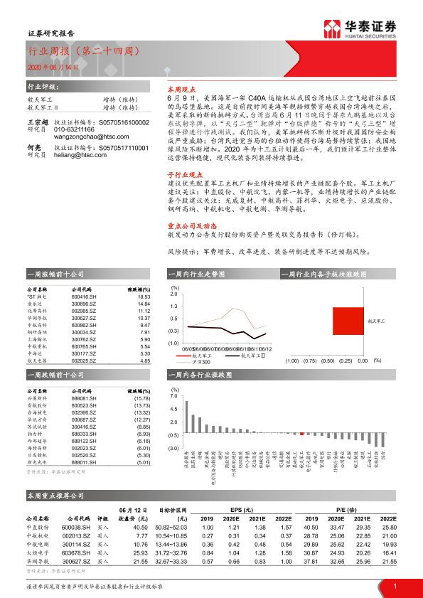 【华泰证券】【20200614】20200614-华泰证券-航天军工行业周报(第二十四周)-15页