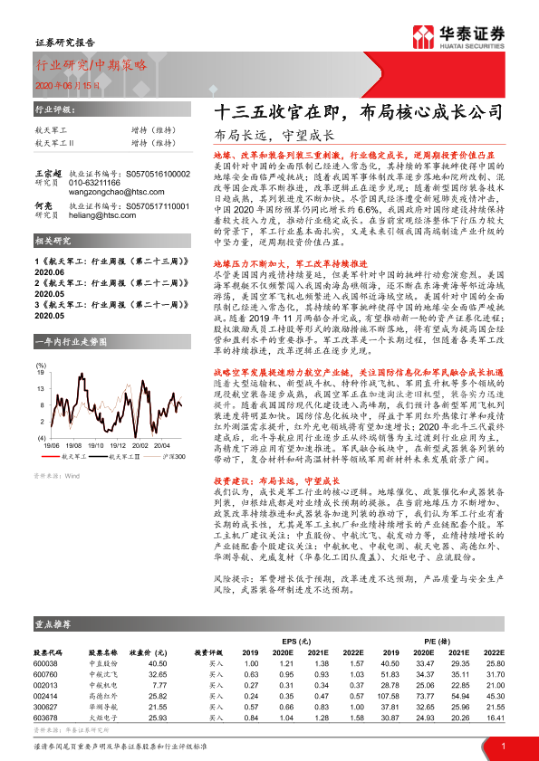 【华泰证券】【20200615】20200615-华泰证券-航天军工中期策略:十三五收官在即,布局核心成长公司-布局长远,守望成长-34页