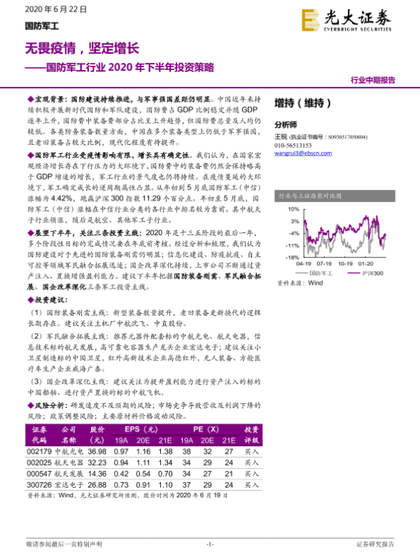 【光大证券】【20200622】国防军工行业2020年下半年投资策略:无畏疫情,坚定增长-31页