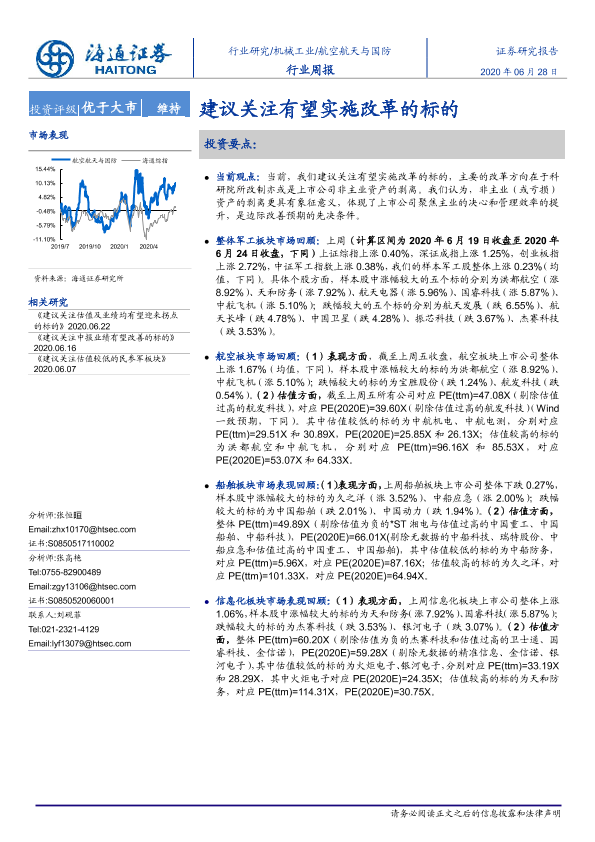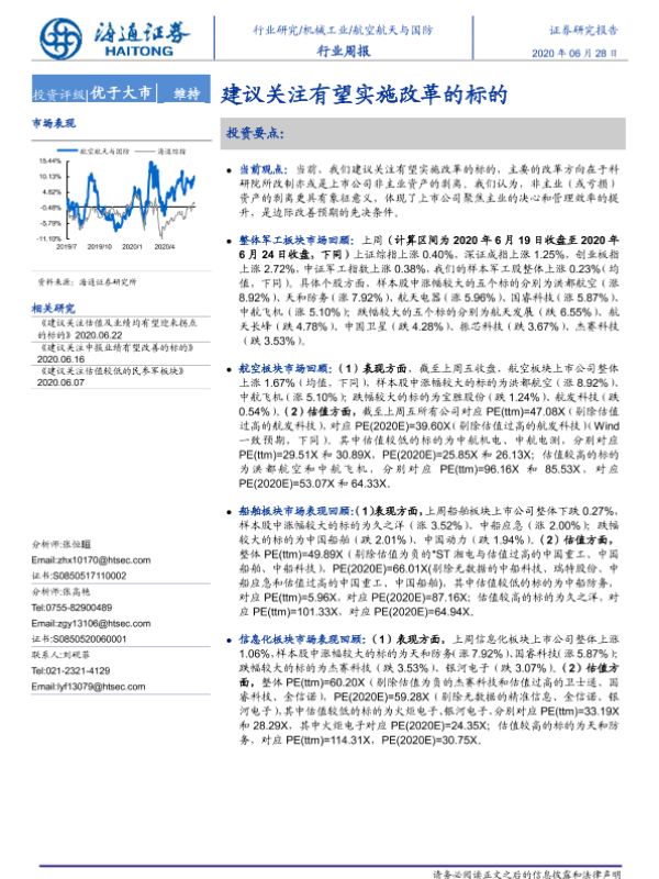 【海通证券】【20200628】20200628-海通证券-航空航天与国防行业周报:建议关注有望实施改革的标的-4页