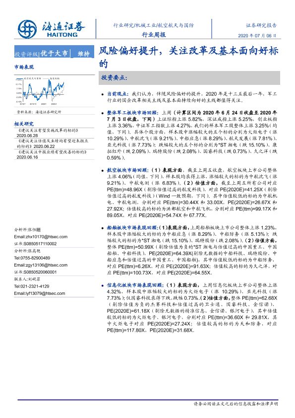 【海通证券】【20200706】20200706-海通证券-航空航天与国防行业周报:风险偏好提升,关注改革及基本面向好标的-4页