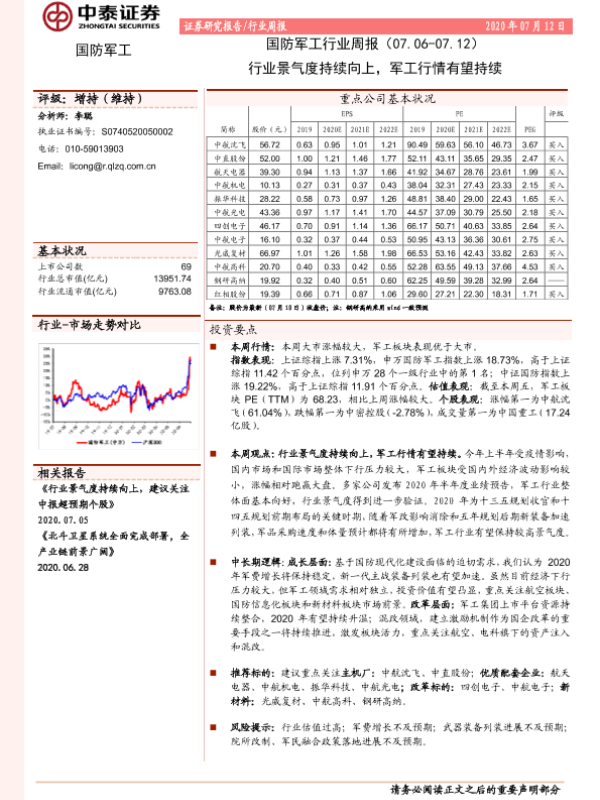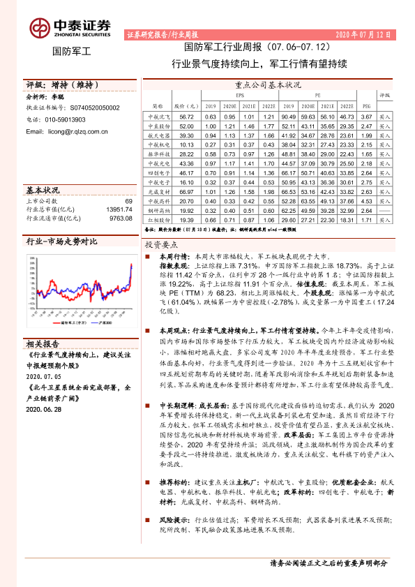 【中泰证券】【20200712】国防军工行业周报:行业景气度持续向上,军工行情有望持续-15页