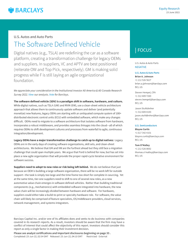 【Barclays】【20220623】U.S. Autos and Auto Parts The Software Defined Vehicle-38页