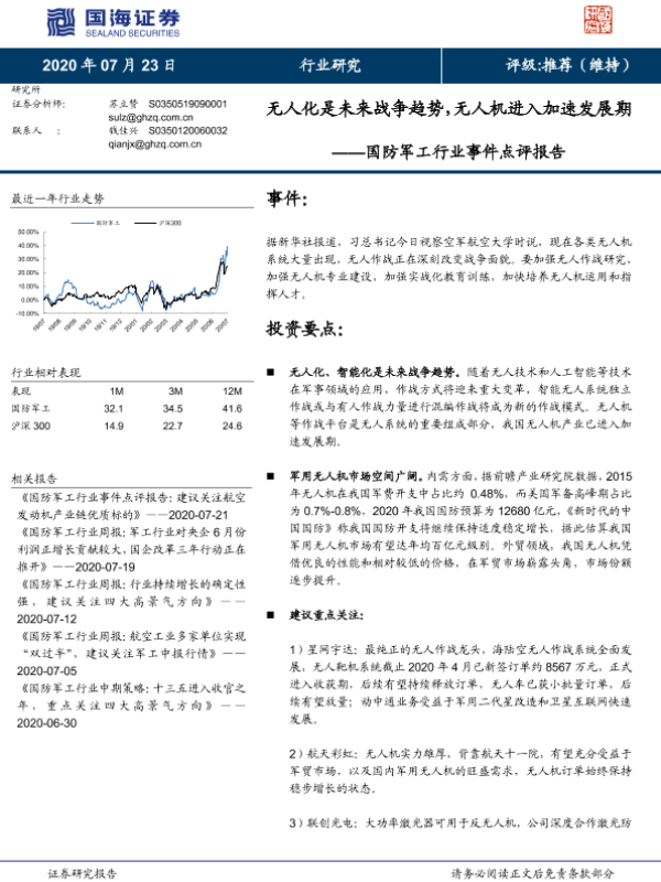 【国海证券】【20200723】无人化是未来战争趋势,无人机进入加速发展期-4页