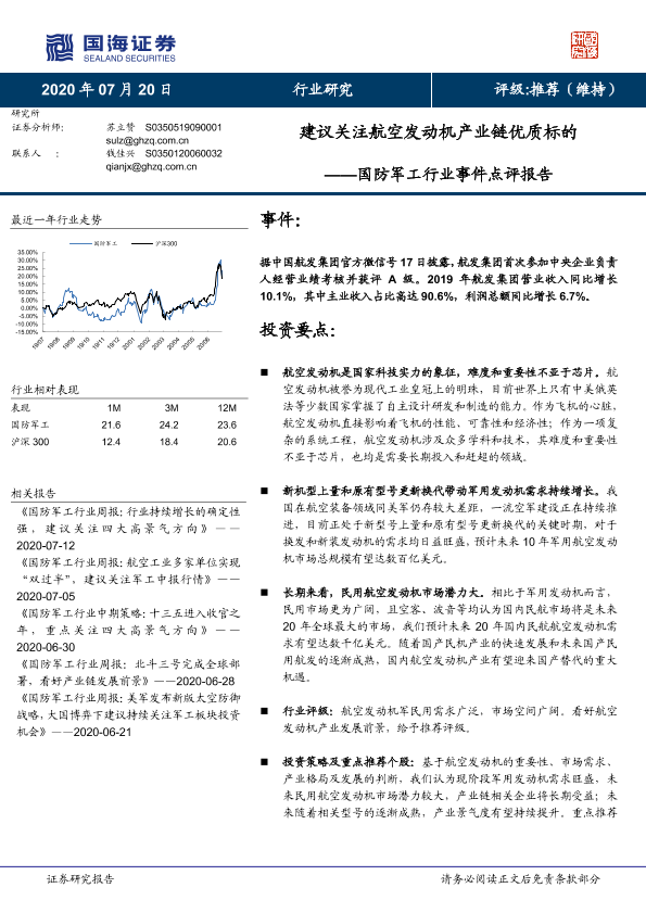 【国海证券】【20200720】国防军工行业事件点评报告:建议关注航空发动机产业链优质标的-4页