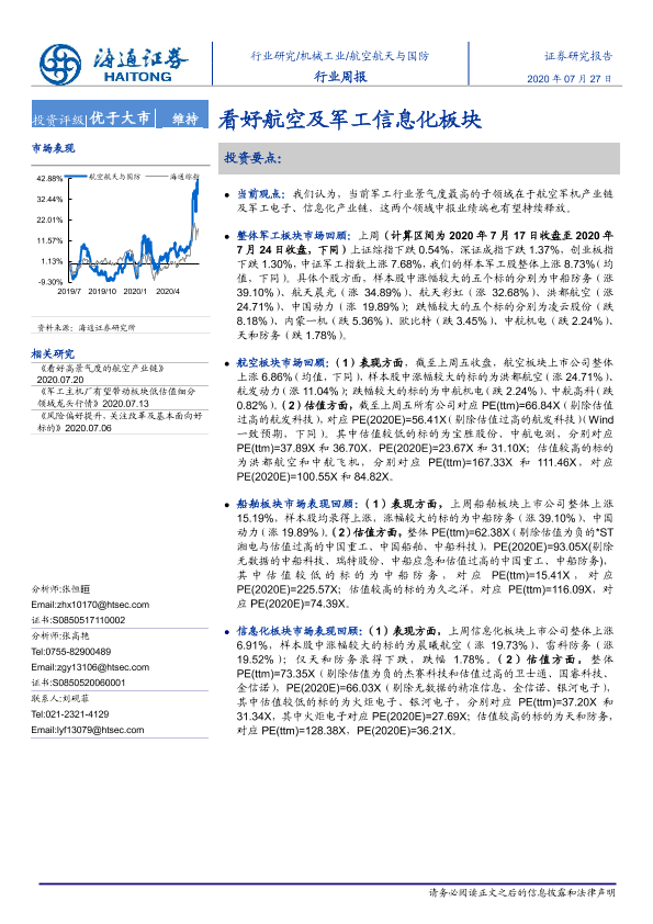 【海通证券】【20200727】20200727-海通证券-航空航天与国防行业周报:看好航空及军工信息化板块-4页