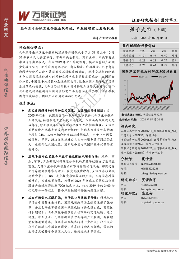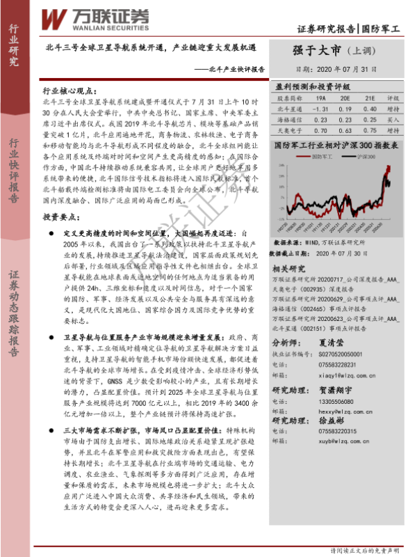 【万联证券】【20200731】北斗三号全球卫星导航系统开通,产业链迎重大发展机遇-4页