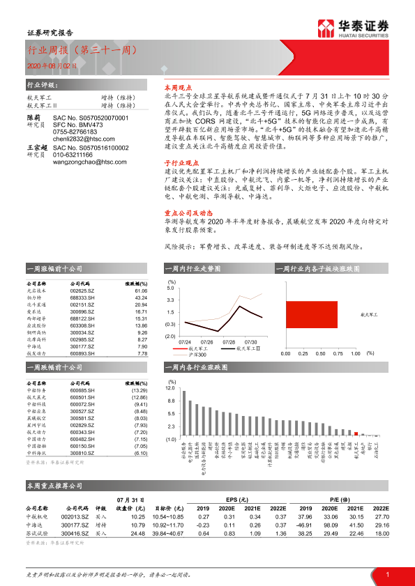 【华泰证券】【20200802】20200802-华泰证券-航天军工行业周报(第三十一周)-16页