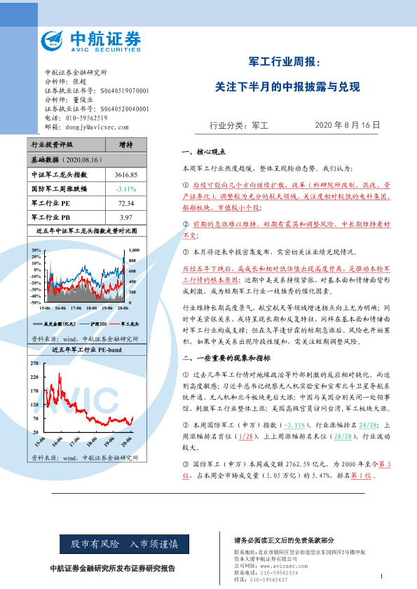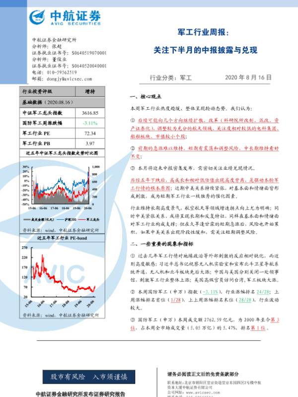 【中航证券】【20200816】20200816-中航证券-军工行业周报:关注下半月的中报披露与兑现-8页