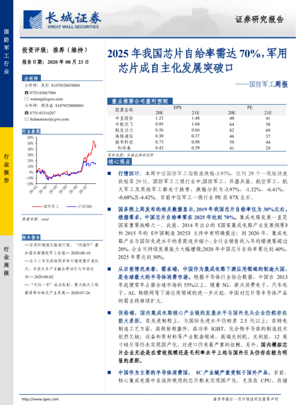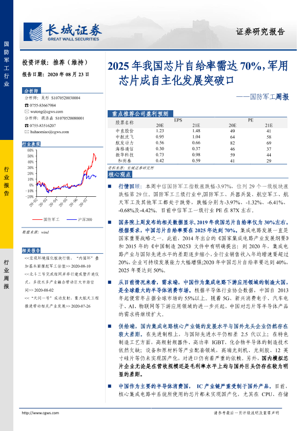 【长城证券】【20200823】20200823-长城证券-国防军工周报:2025年我国芯片自给率需达70%,军用芯片成自主化发展突破口-19页