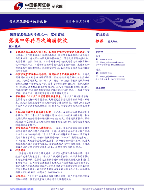 【银河证券】【20200824】国防信息化系列专题之一:空管雷达落寞中等待再次绚丽绽放-23页
