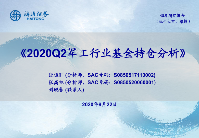 【海通证券】【20200922】2020Q2军工行业基金持仓分析-18页