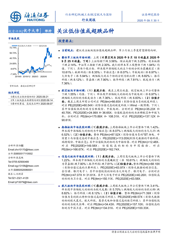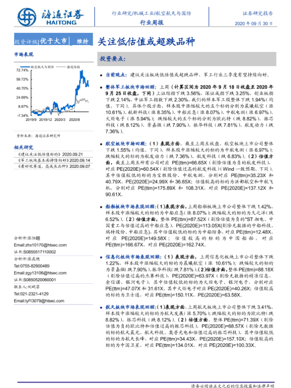 【海通证券】【20200930】20200930-海通证券-航空航天与国防行业周报:关注低估值或超跌品种-4页