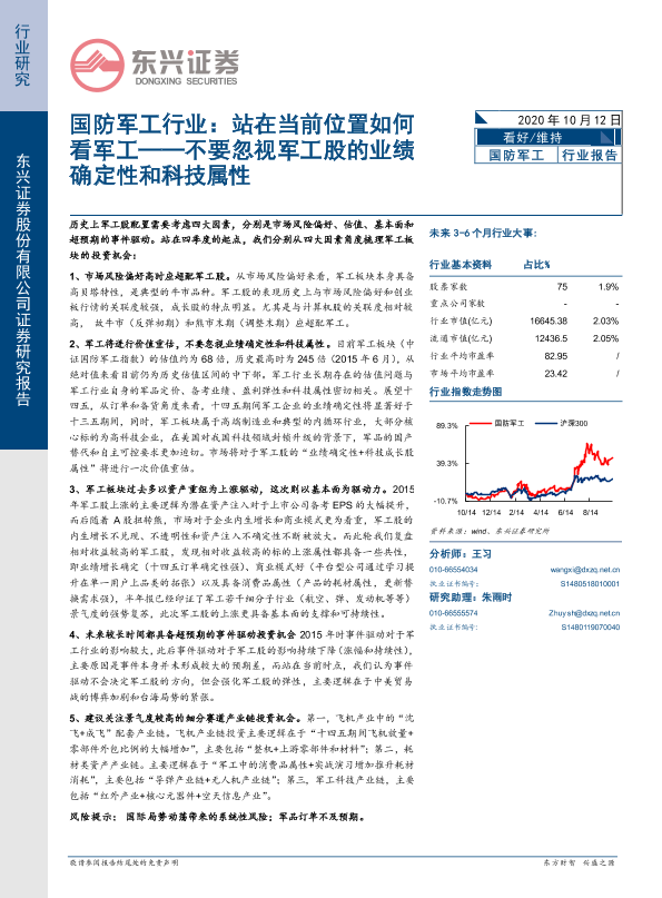 【东兴证券】【20201012】国防军工行业:站在当前位置如何看军工——不要忽视军工股的业绩确定性和科技属性-4页