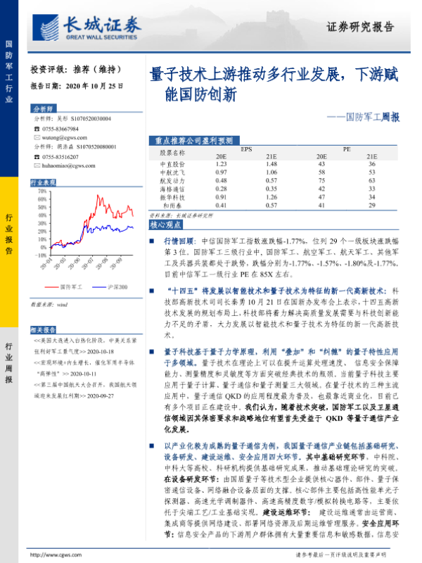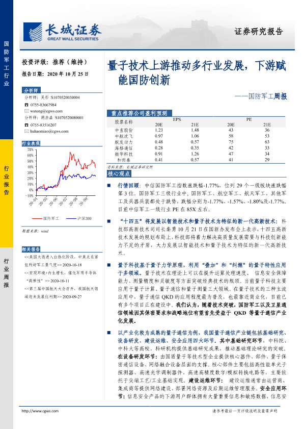 【长城证券】【20201025】20201025-长城证券-国防军工周报:量子技术上游推动多行业发展,下游赋能国防创新-30页