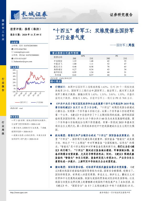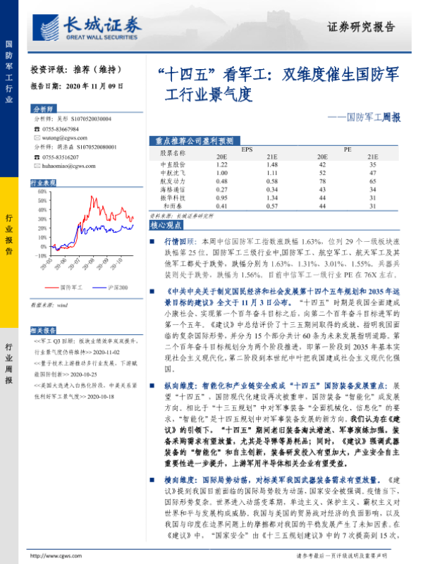 【长城证券】【20201109】20201109-长城证券-国防军工周报:“十四五”看军工:双维度催生国防军工行业景气度-17页
