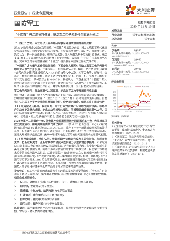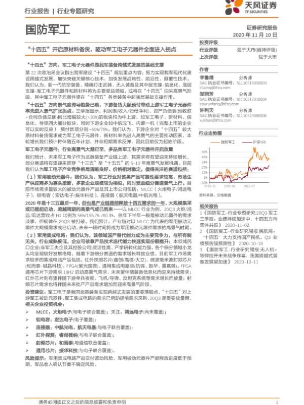【天风证券】【20201110】国防军工行业专题研究:“十四五”开启原材料备货,驱动军工电子元器件全面进入拐点-12页