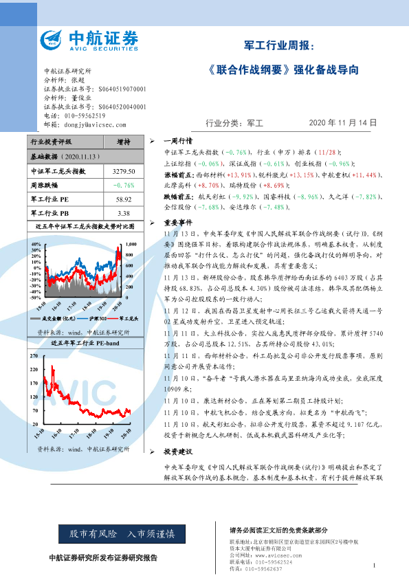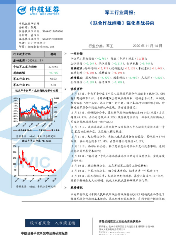 【中航证券】【20201114】军工行业周报:《联合作战纲要》强化备战导向-5页