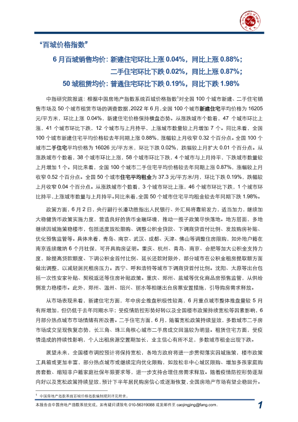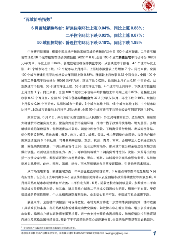 【中国房地产指数系统】【202206】中国房地产指数系统百城价格指数报告(2022年6月)-17页