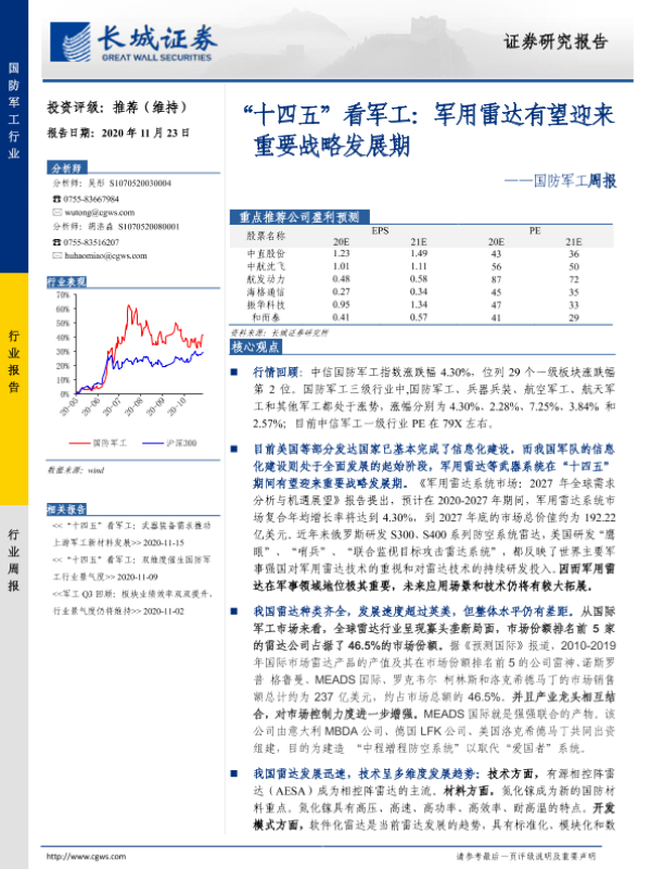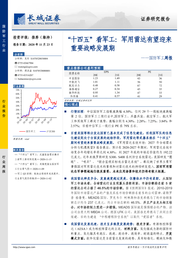 【长城证券】【20201123】20201123-长城证券-国防军工周报:“十四五”看军工:军用雷达有望迎来重要战略发展期-24页