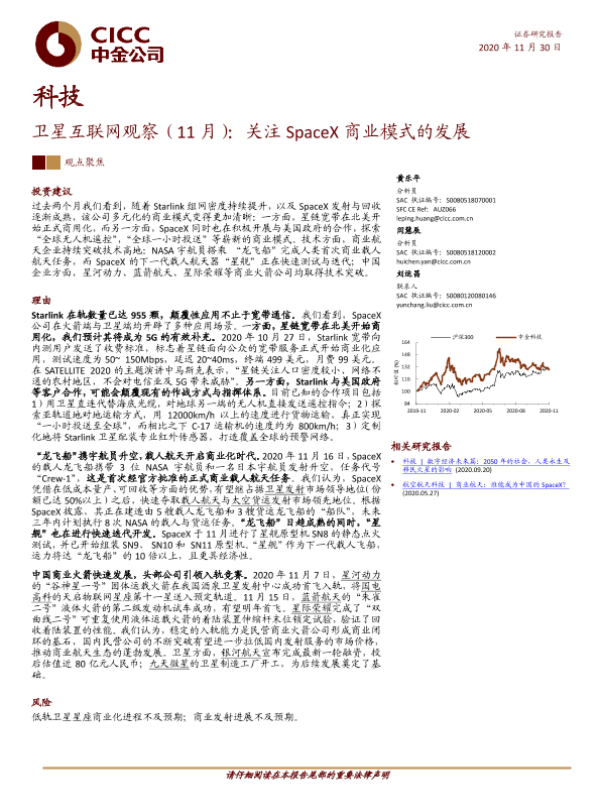 【中金公司】【20201130】卫星互联网观察(11月):关注SpaceX商业模式的发展-25页