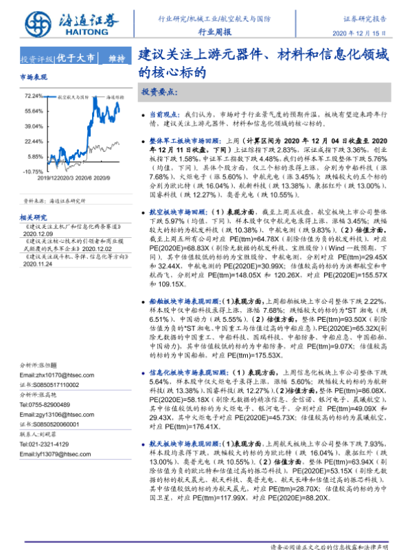 【海通证券】【20201215】20201215-海通证券-航空航天与国防行业周报:建议关注上游元器件、材料和信息化领域的核心标的-4页