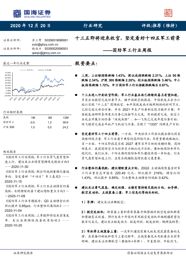【国海证券】【20201220】国防军工行业周报:十三五即将迎来收官,坚定看好十四五军工前景-12页