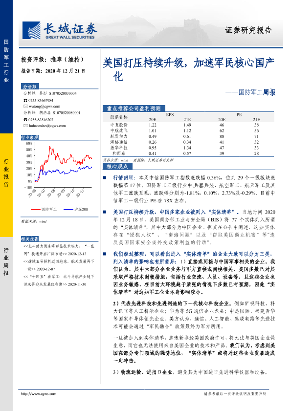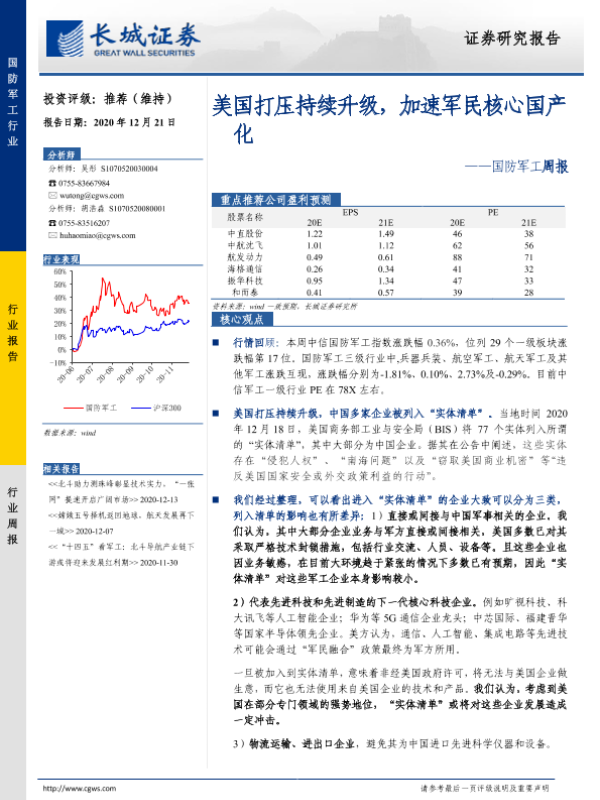 【长城证券】【20201221】20201221-长城证券-国防军工周报:美国打压持续升级,加速军民核心国产化-19页