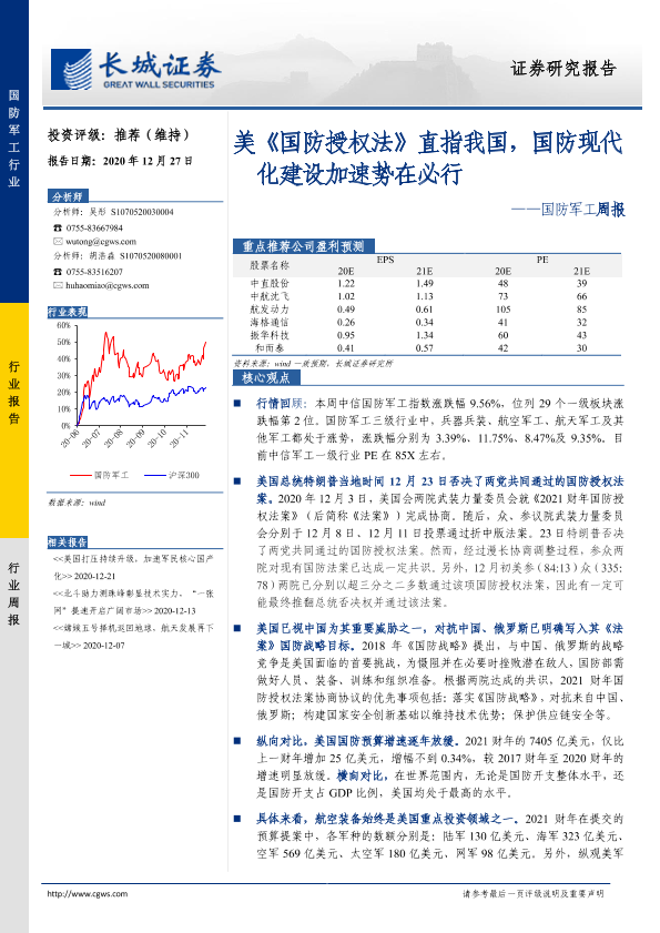 【长城证券】【20201227】20201227-长城证券-国防军工周报:美《国防授权法》直指我国,国防现代化建设加速势在必行-23页