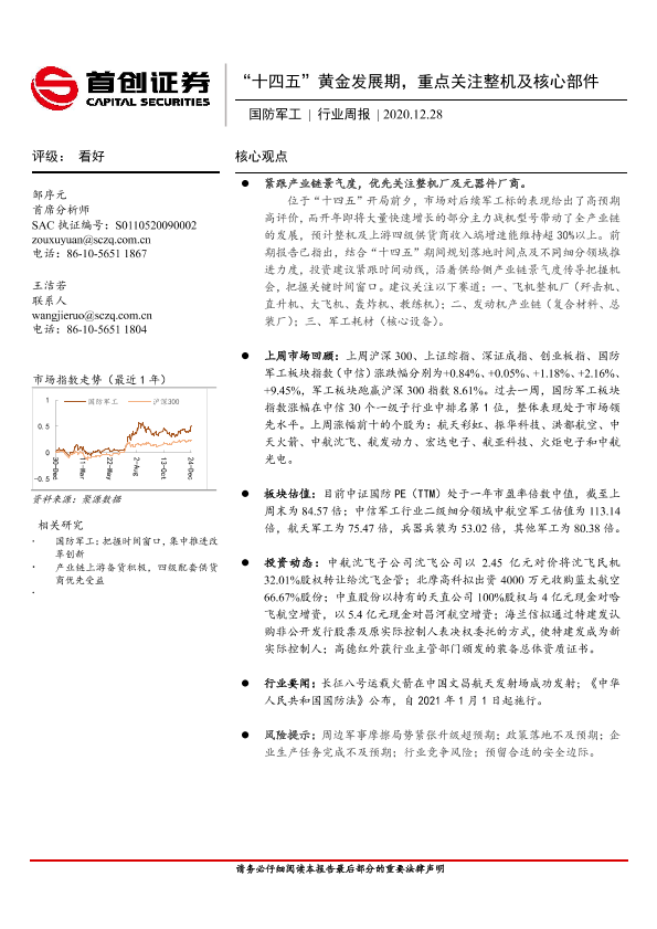 【首创证券】【20201228】20201228-首创证券-国防军工行业周报:“十四五”黄金发展期,重点关注整机及核心部件-8页