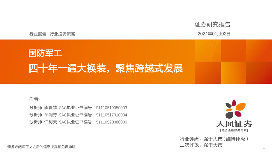 【天风证券】【20210102】国防军工行业投资策略:四十年一遇大换装,聚焦跨越式发展-34页