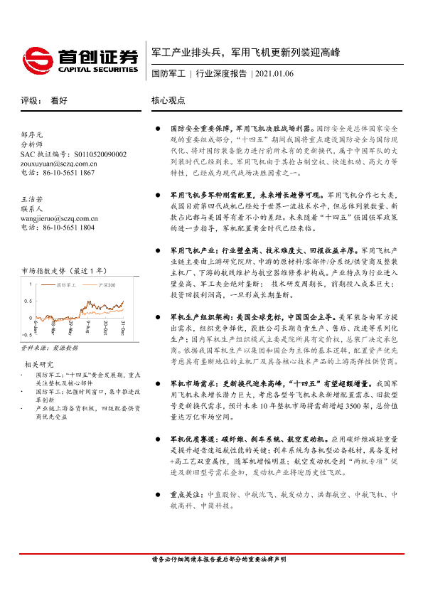 【首创证券】【20210106】军工产业排头兵,军用飞机更新列装迎高峰-32页