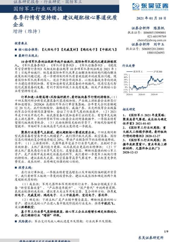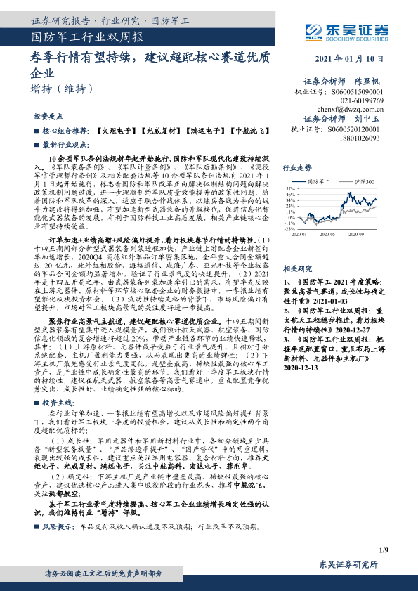 【东吴证券】【20210110】20210110-东吴证券-国防军工行业双周报:春季行情有望持续,建议超配核心赛道优质企业-9页