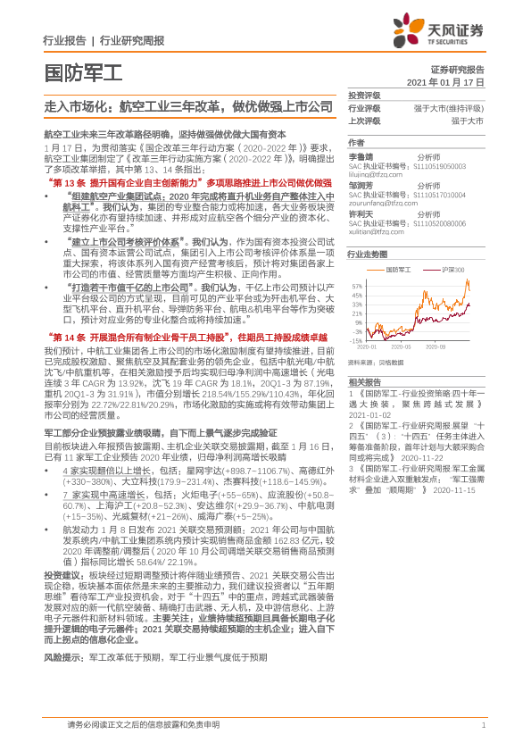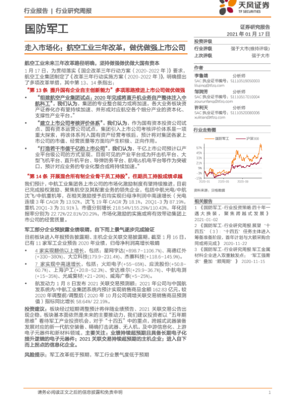 【天风证券】【20210117】国防军工行业:走入市场化:航空工业三年改革,做优做强上市公司-3页
