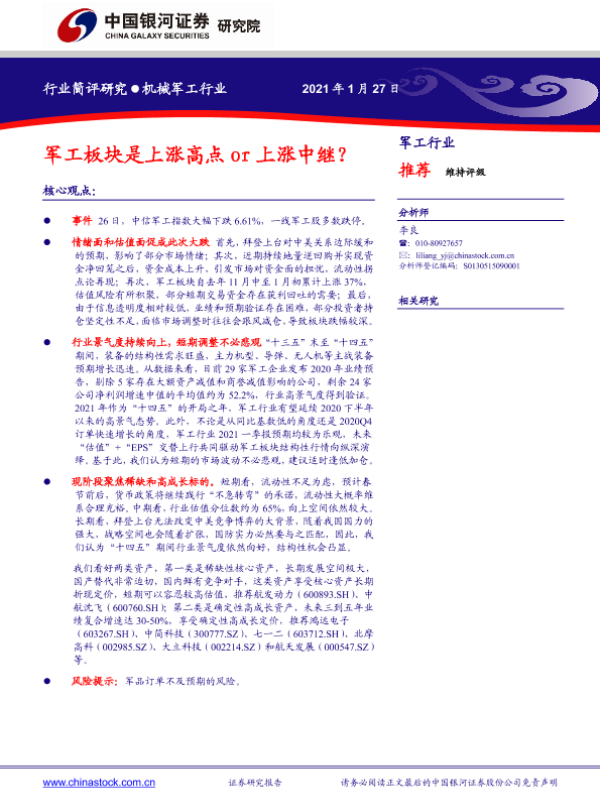 【银河证券】【20210127】军工板块是上涨高点or上涨中继?-2页