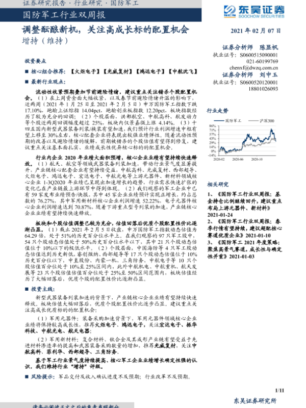 【东吴证券】【20210207】20210207-东吴证券-国防军工行业双周报:调整酝酿新机,关注高成长标的配置机会-11页