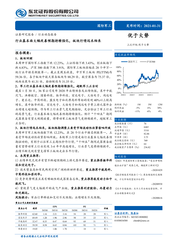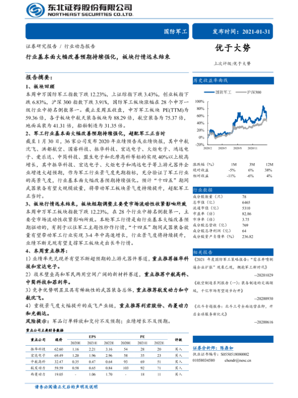 【东北证券】【20210131】国防军工:行业基本面大幅改善预期持续强化,板块行情远未结束-19页