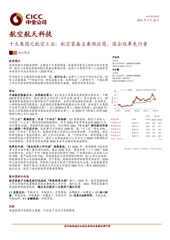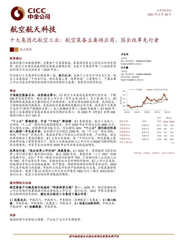 【中金公司】【20210218】20210218-中金公司-航空航天科技行业:十大集团之航空工业:航空装备主要供应商,国企改革先行者-28页