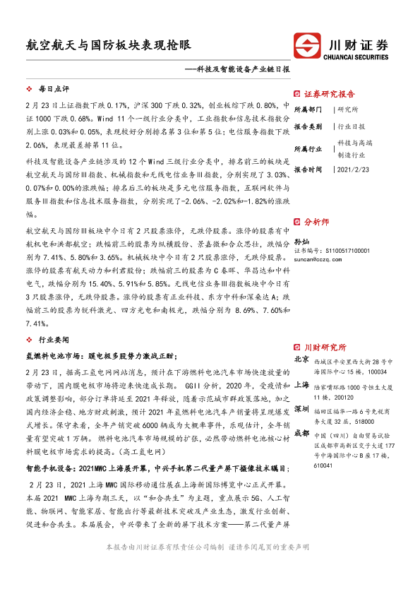 【川财证券】【20210223】科技及智能设备产业链日报:航空航天与国防板块表现抢眼-3页