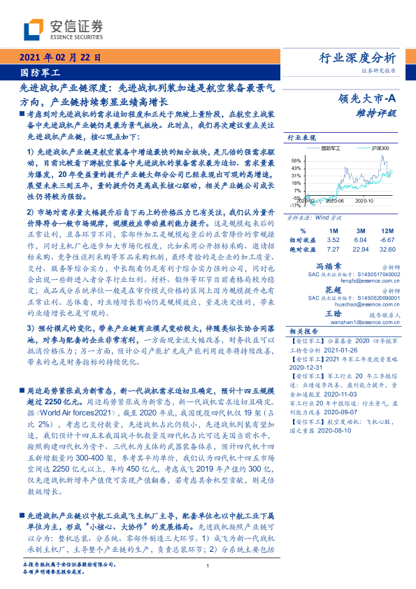 【安信证券】【20210222】先进战机产业链深度:先进战机列装加速是航空装备最景气方向,产业链持续彰显业绩高增长-19页