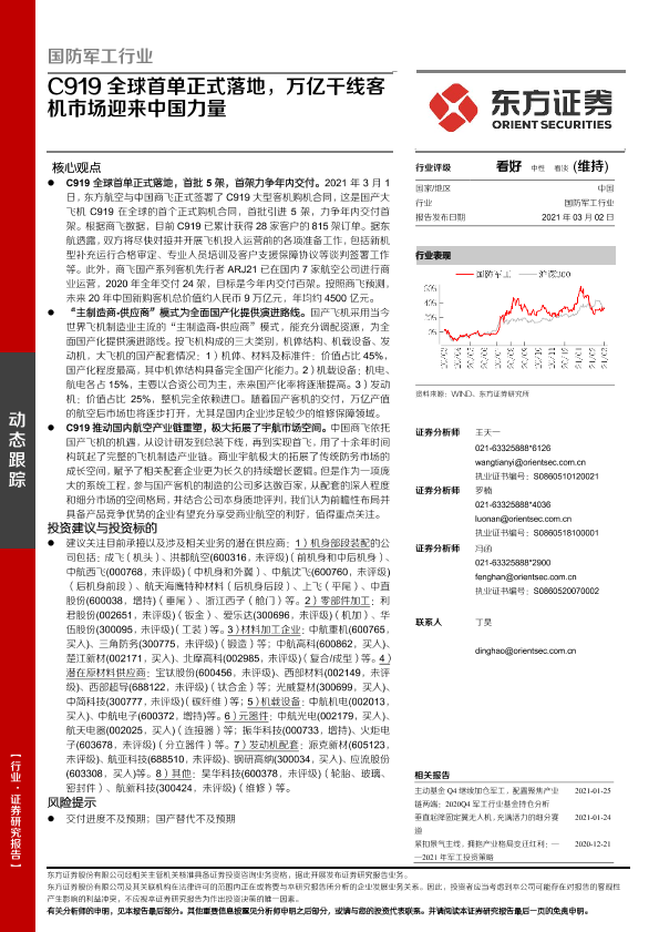 【东方证券】【20210302】国防军工行业:C919全球首单正式落地,万亿干线客机市场迎来中国力量-3页