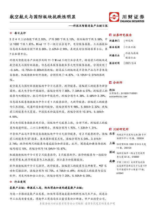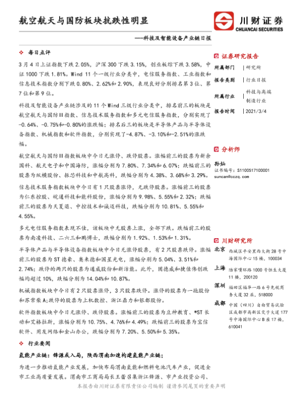 【川财证券】【20210304】科技及智能设备产业链日报:航空航天与国防板块抗跌性明显-3页