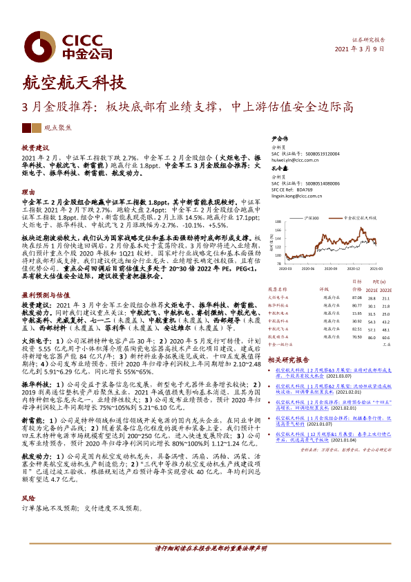 【中金公司】【20210309】20210309-中金公司-航空航天科技:3月金股推荐:板块底部有业绩支撑,中上游估值安全边际高-8页