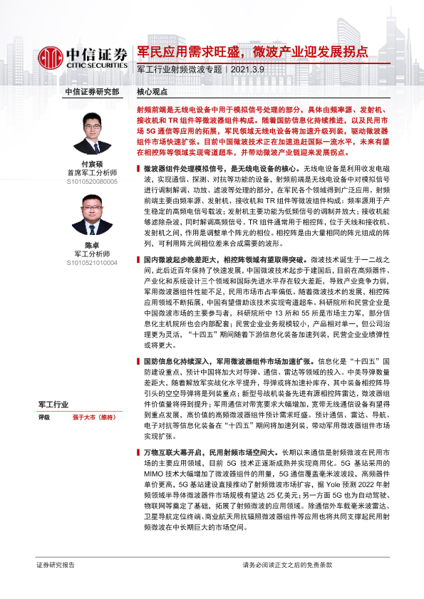 【中信证券】【20210309】军工行业射频微波专题:军民应用需求旺盛,微波产业迎发展拐点-33页