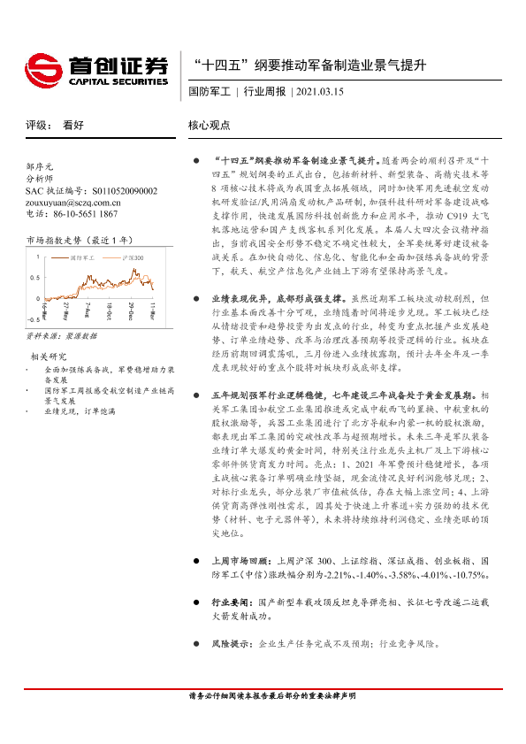 【首创证券】【20210315】20210315-首创证券-国防军工行业周报:“十四五”纲要推动军备制造业景气提升-9页