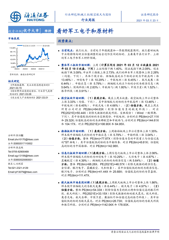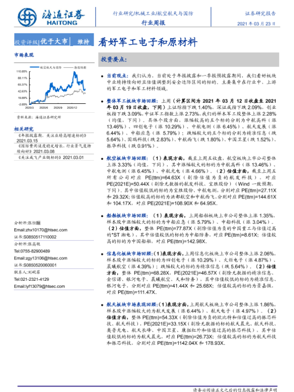 【海通证券】【20210323】20210323-海通证券-航空航天与国防行业周报:看好军工电子和原材料-4页
