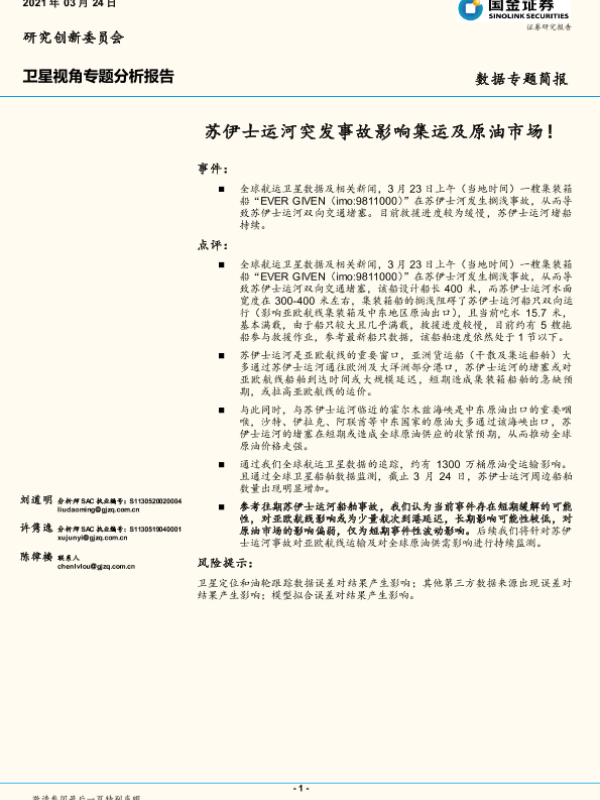 【国金证券】【20210324】卫星视角专题分析报告:苏伊士运河突发事故影响集运及原油市场-11页
