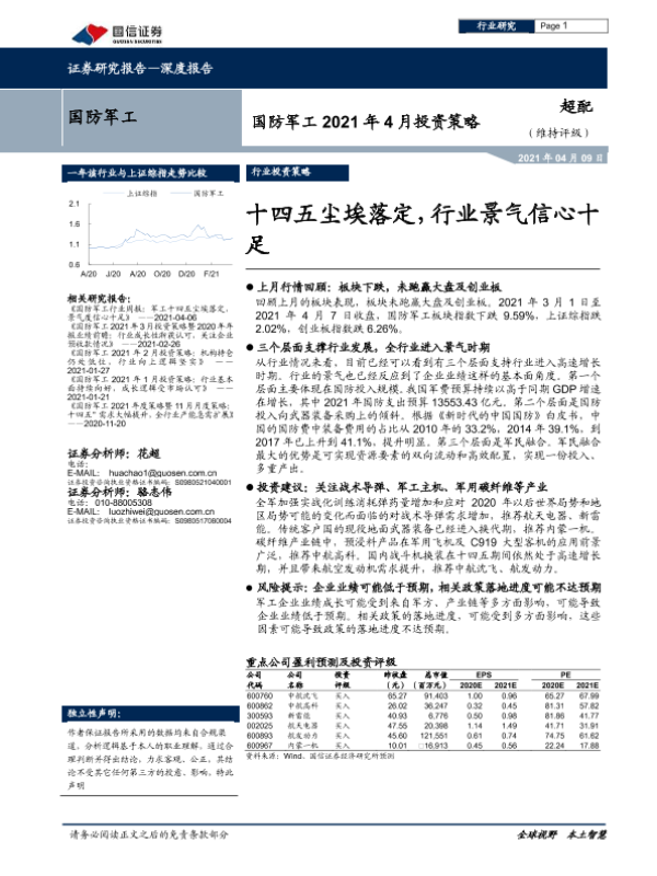 【国信证券】【20210409】国防军工2021年4月投资策略:十四五尘埃落定,行业景气信心十足-11页